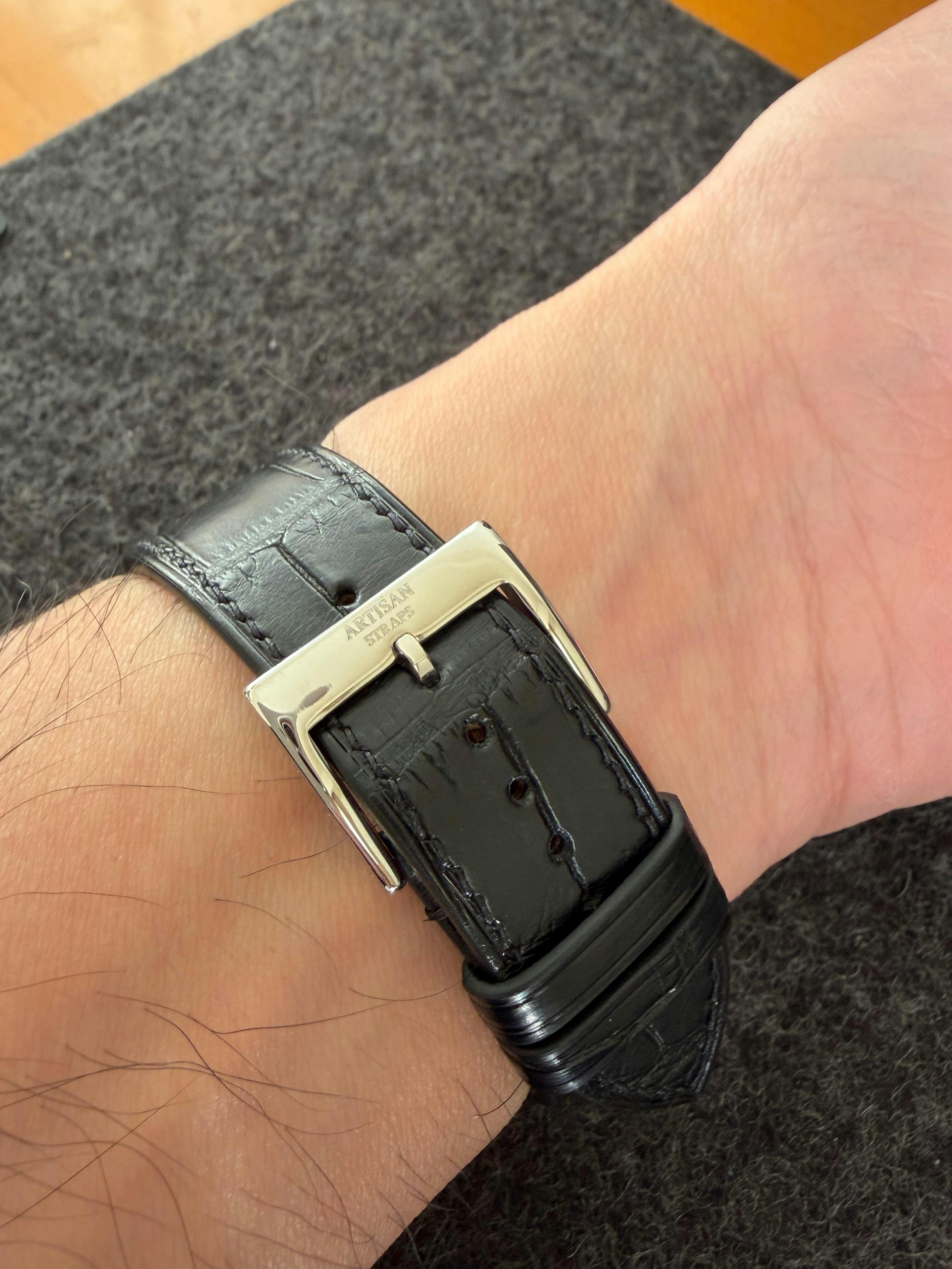 After chatting with Artisan Straps to ensure proper fitment, I placed an order and patiently waited about three weeks for the band to come in. Mind you, I ordered a custom band from Cartier with a rose gold buckle totaling $1100 that was not the correct color (which they told me was discontinued after I paid) and waited three months! The alligator strap was soft, supple, and well made. I added on a rose gold buckle which was the perfect touch. I did have to fight with the strap a little to get one of the sides to fit but it eventually lost the battle. This strap is my daily wear now and I look forward to ordering different colors and styles! Maybe one day they will have the buckle option to add precious metal (18k) to the band.