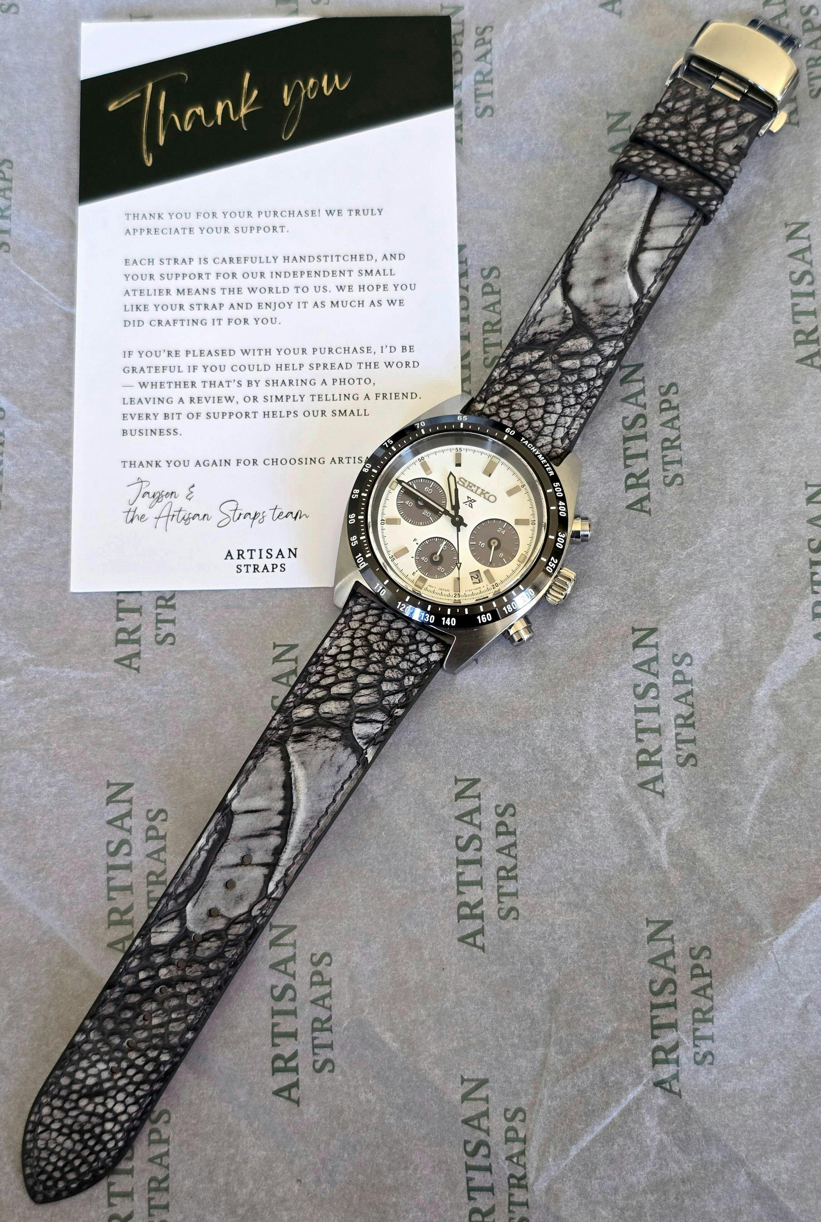 Recently picked up a made-to-order Grey Nubuck Ostrich Leg leather strap from Artisan Straps, and I couldn’t be happier. The quality is exceptional, beautifully finished, supple, and clearly made with great attention to detail.