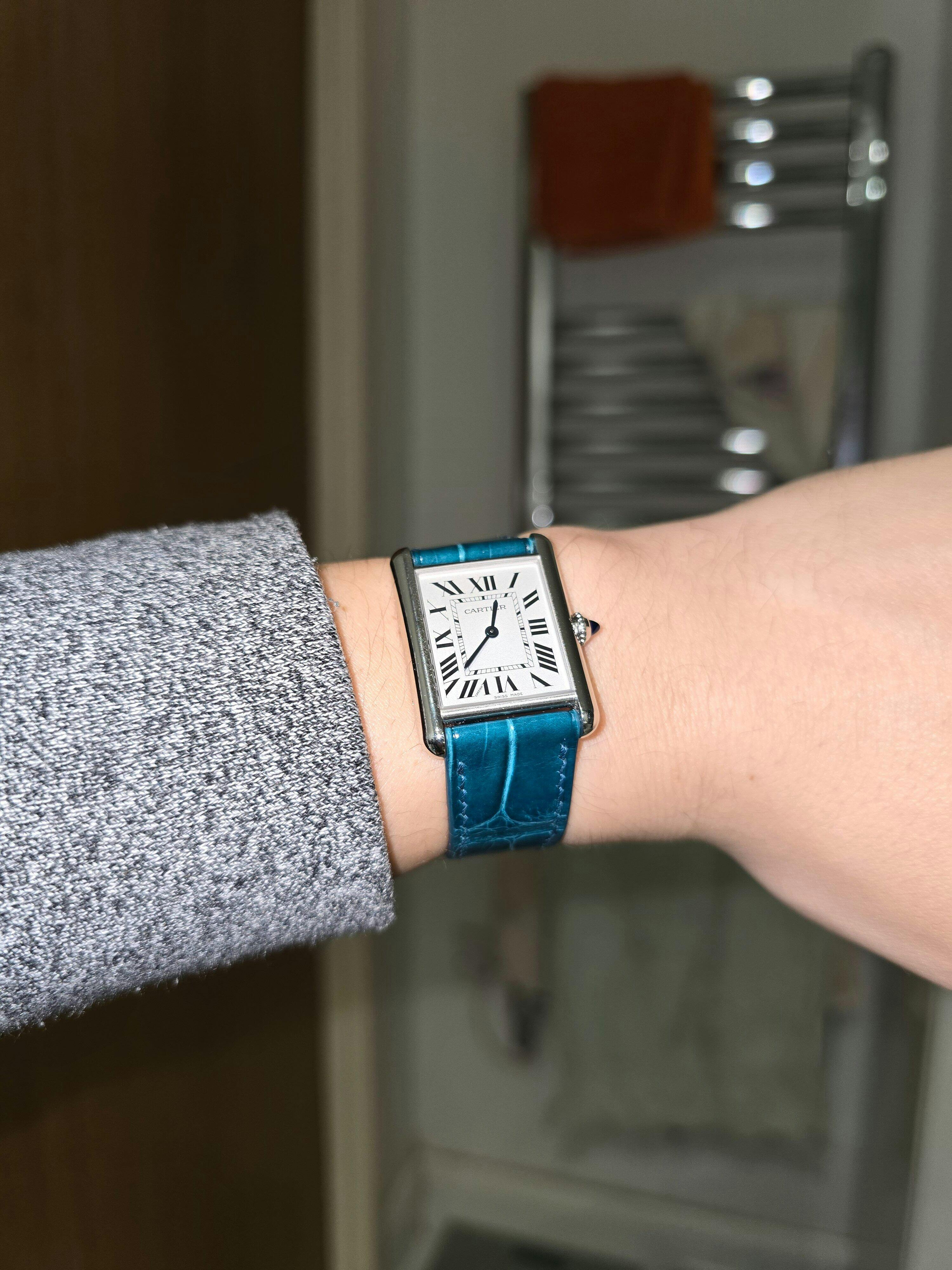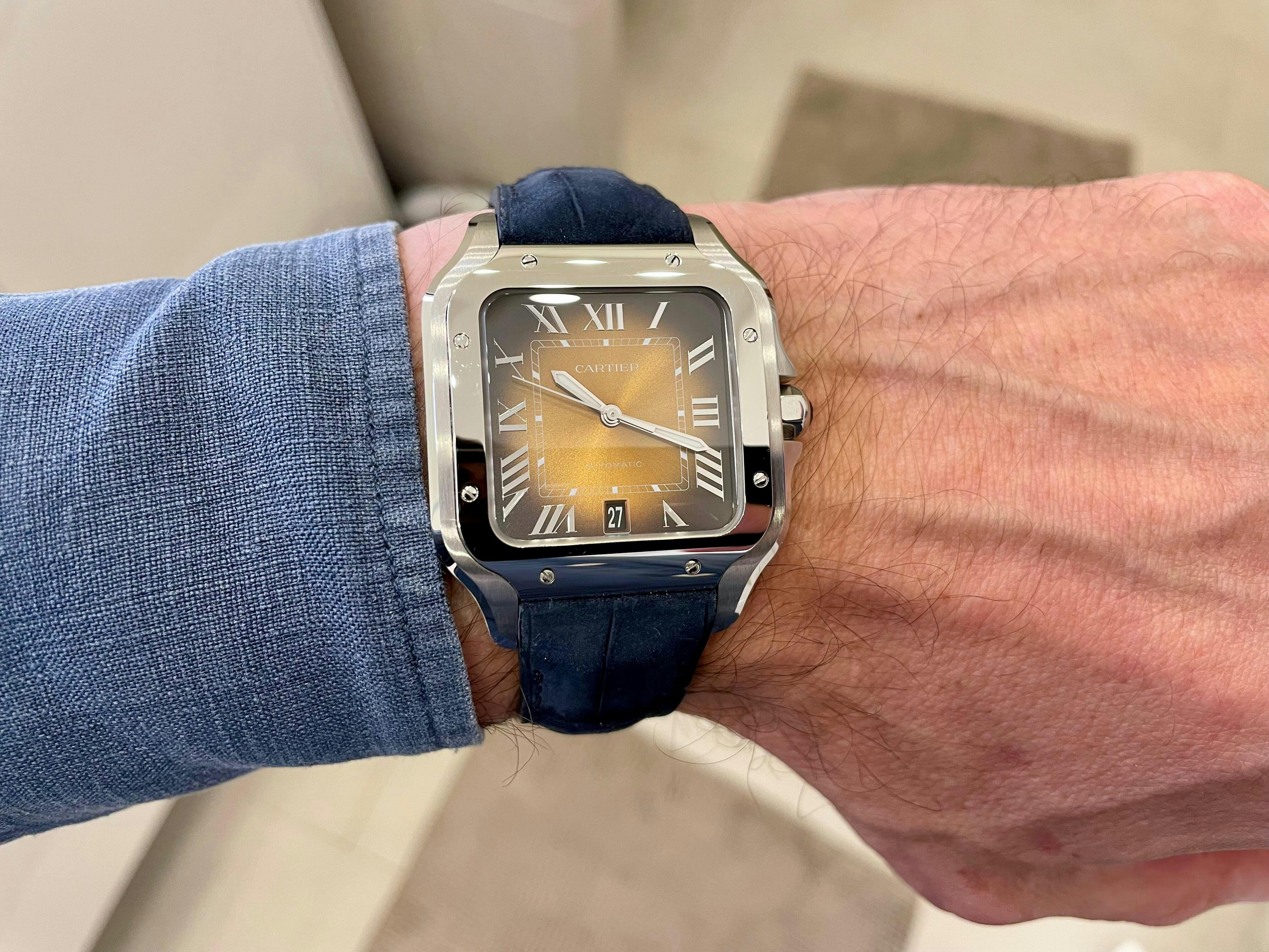 I ordered a blue alligator leather strap specially made for my Cartier Santos, including the quick-release system for this model. The strap arrived today and I am absolutely thrilled!