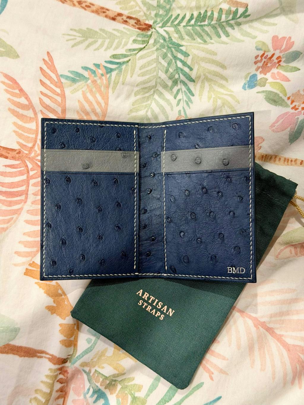 Himalayan croc, hand stitching, fully customisable at this price point, what’s not to love? I went for navy and grey ostrich inside, navy edge paint, natural stitching and silver hot stamping. Every edge is neatly sealed with edge paint, and the hand stitching is beautiful. The leather is amazing to touch and smells incredible. Compact and functional, yet oozing class.
