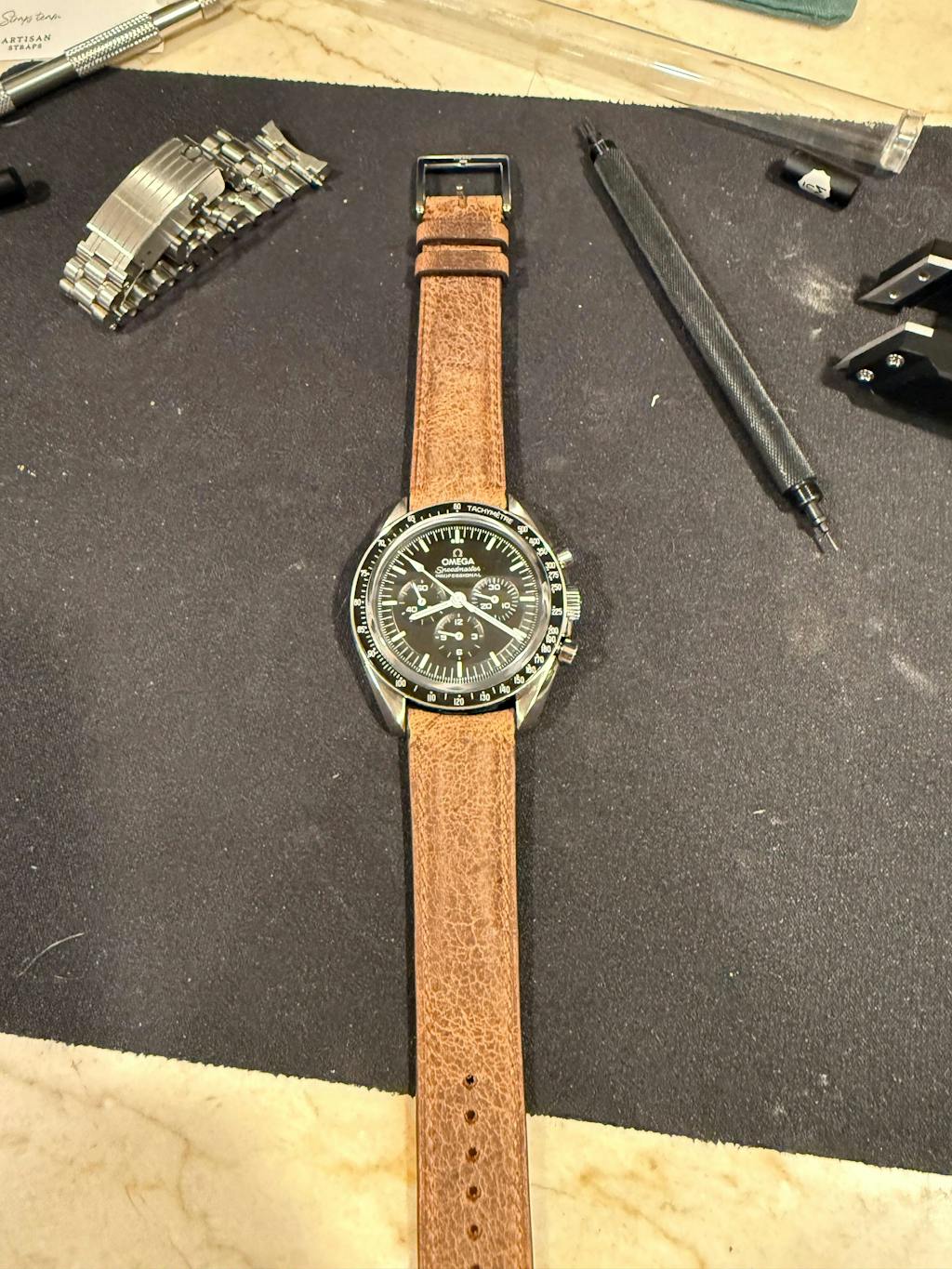 The kudu hide strap looks amazing on my Speedmaster pro moonwatch. Looking to buy another strap from these fine folks.