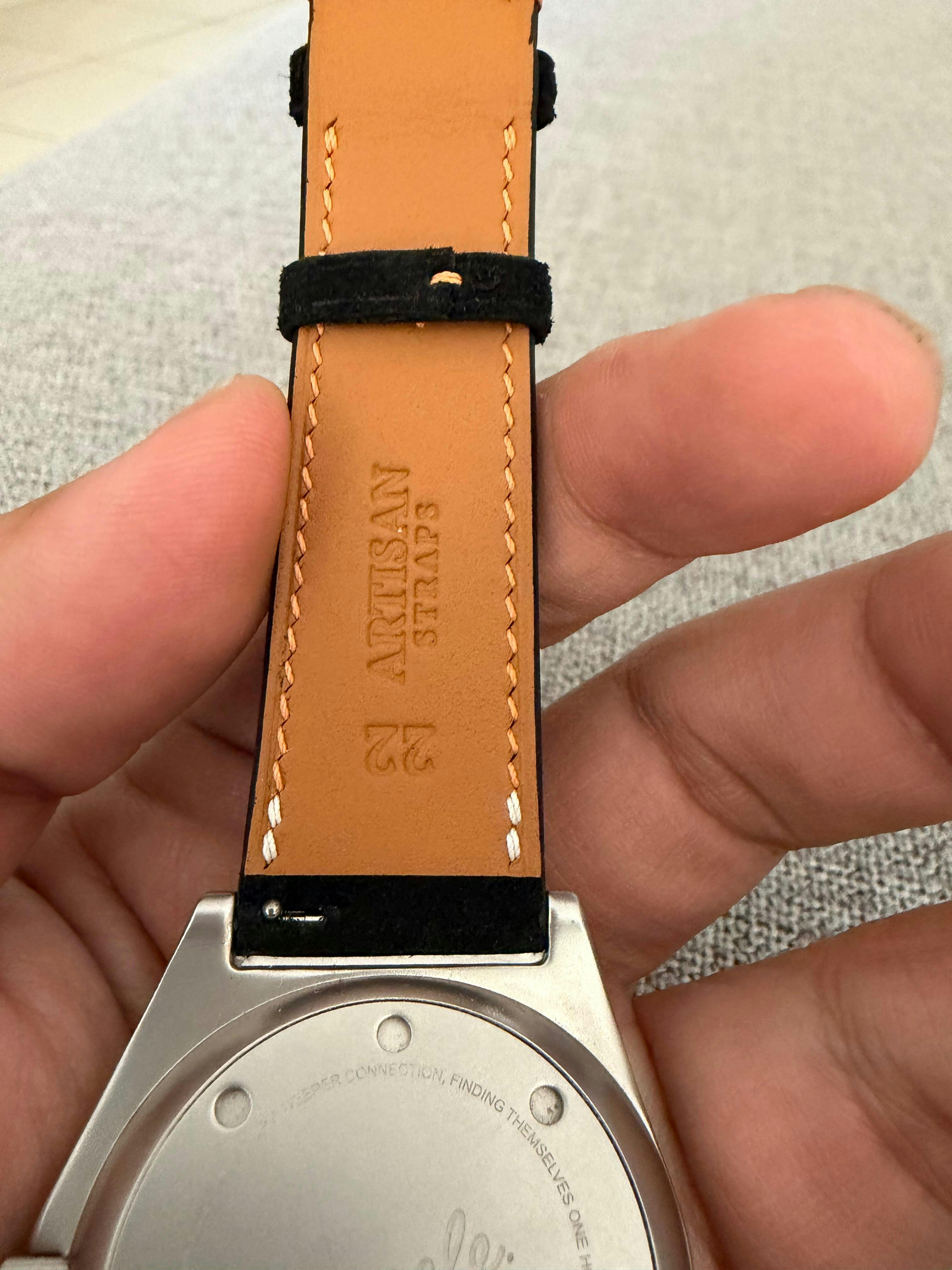 Nuestro cuero de gamuza es un cuero curtido al cromo de Conceria Zabri de la Toscana, Italia. La gamuza es un material extremadamente suave y aterciopelado y es muy cómodo en la muñeca. La textura aterciopelada le dará a su reloj un aspecto informal.