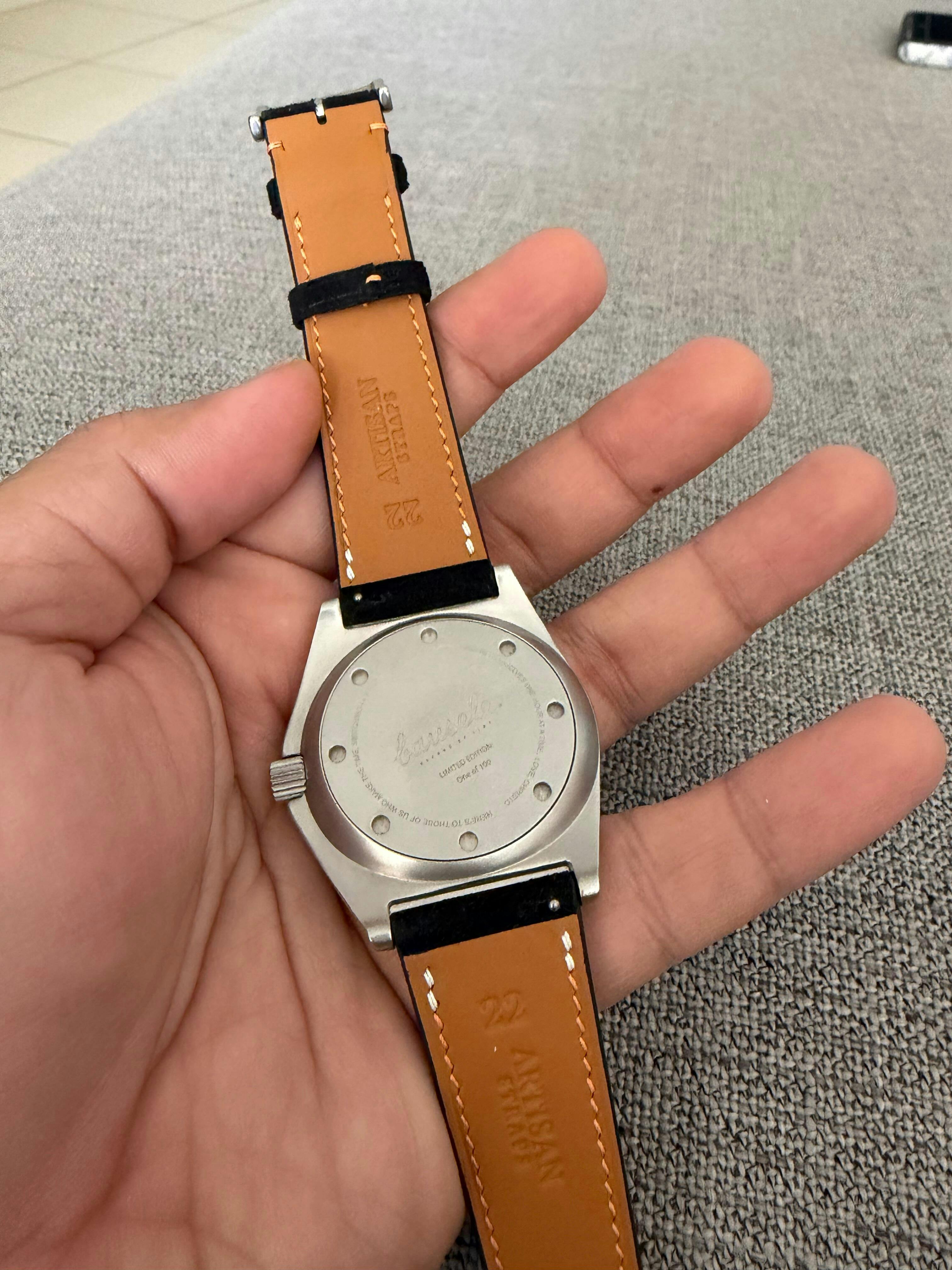 Todas nuestras correas de reloj están hechas a mano, utilizando técnicas tradicionales de marroquinería. Se cortan, se cosen y se pintan los bordes a mano para garantizar que sean duraderas y adquieran carácter con el uso. Todas nuestras correas están forradas con cuero Zermatt, un cuero de becerro francés hipoalergénico y resistente al agua. Como todos nuestros cueros son de grano completo, las características naturales del cuero se notarán y pueden variar según la correa.