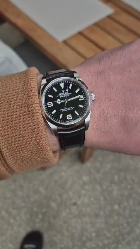 Todas nuestras correas de reloj están hechas a mano, utilizando técnicas tradicionales de marroquinería. Se cortan, se cosen y se pintan los bordes a mano para garantizar que sean duraderas y adquieran carácter con el uso. Todas nuestras correas están forradas con cuero Zermatt, un cuero de becerro francés hipoalergénico y resistente al agua. Como todos nuestros cueros son de grano completo, las características naturales del cuero se notarán y pueden variar según la correa.