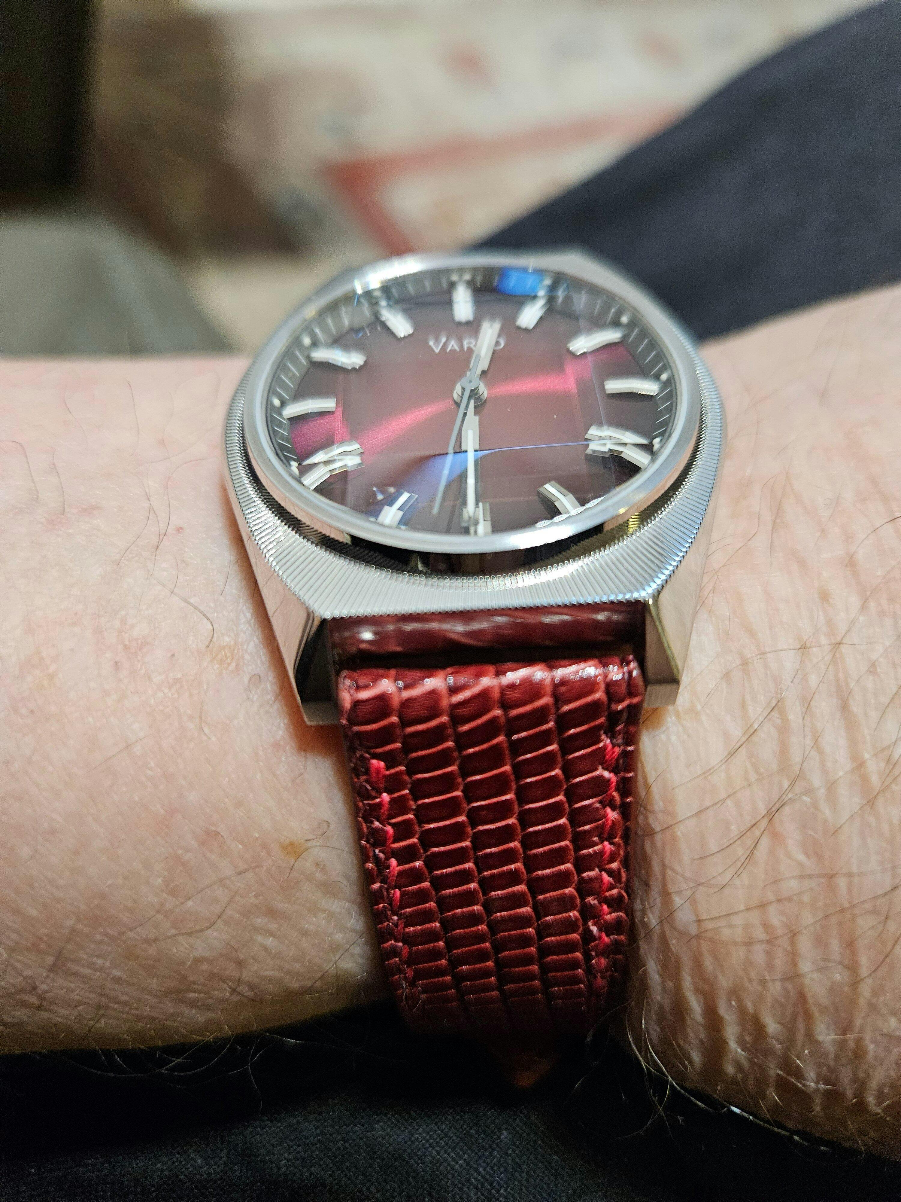 Artisan managed to get my order through on Christmas Eve. My Wife loved her orange epsom on deployant for her vintage Waltham & my red lizard on deployant perfectly complements my Vario Futurist. Thanks again to Jayson & Team for two more great looking & beautifully crafted straps.