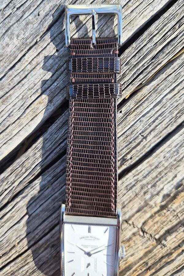 It took a little longer than expected as Jayson wasn't happy that he could get the large (wide and long) strap out of the skin he had. He asked about the watch and customised the thickness to suit my lugs and my preference for an unpadded strap. The result is stunning. Everything about it has the unmistakable touch of being carefully handmade by a real craftsman. It has elevated a pretty watch into something truly special. I heartily recommend Artisan Straps to anyone considering a high end, handmade watch strap.