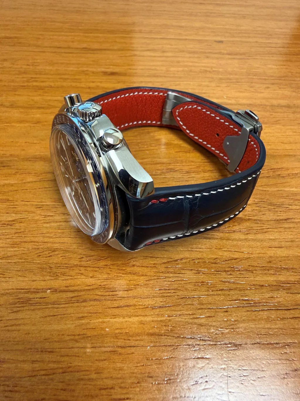 All of our watch straps are entirely handmade, utilising traditional leathercrafting techniques. They are cut, saddle stitched and edge painted by hand to ensure your straps are durable and develop character with wear. All of our straps are lined with Zermatt leather, a hypoallergenic and water-resistant french calf leather. As all our leathers are full-grain leathers, the natural characteristics of the leather will show and may vary across straps.