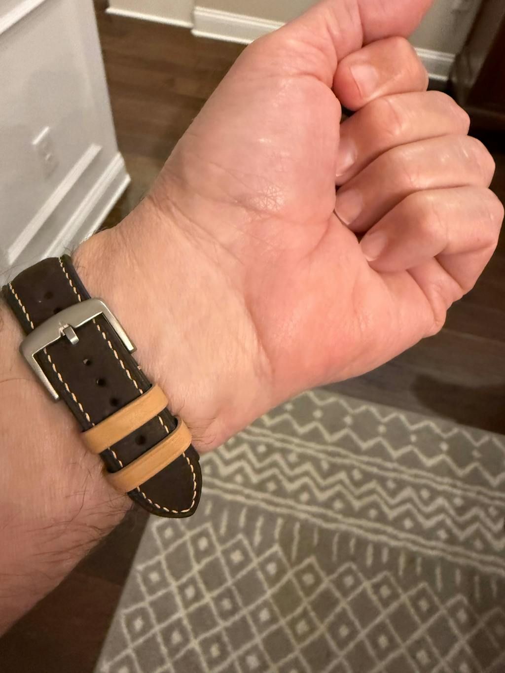 While everyone’s preference for their strap lengths may differ, we don’t like our straps to be too long. A good indicator of whether a strap is too long is if the tail of the strap is visible on your wrist.
