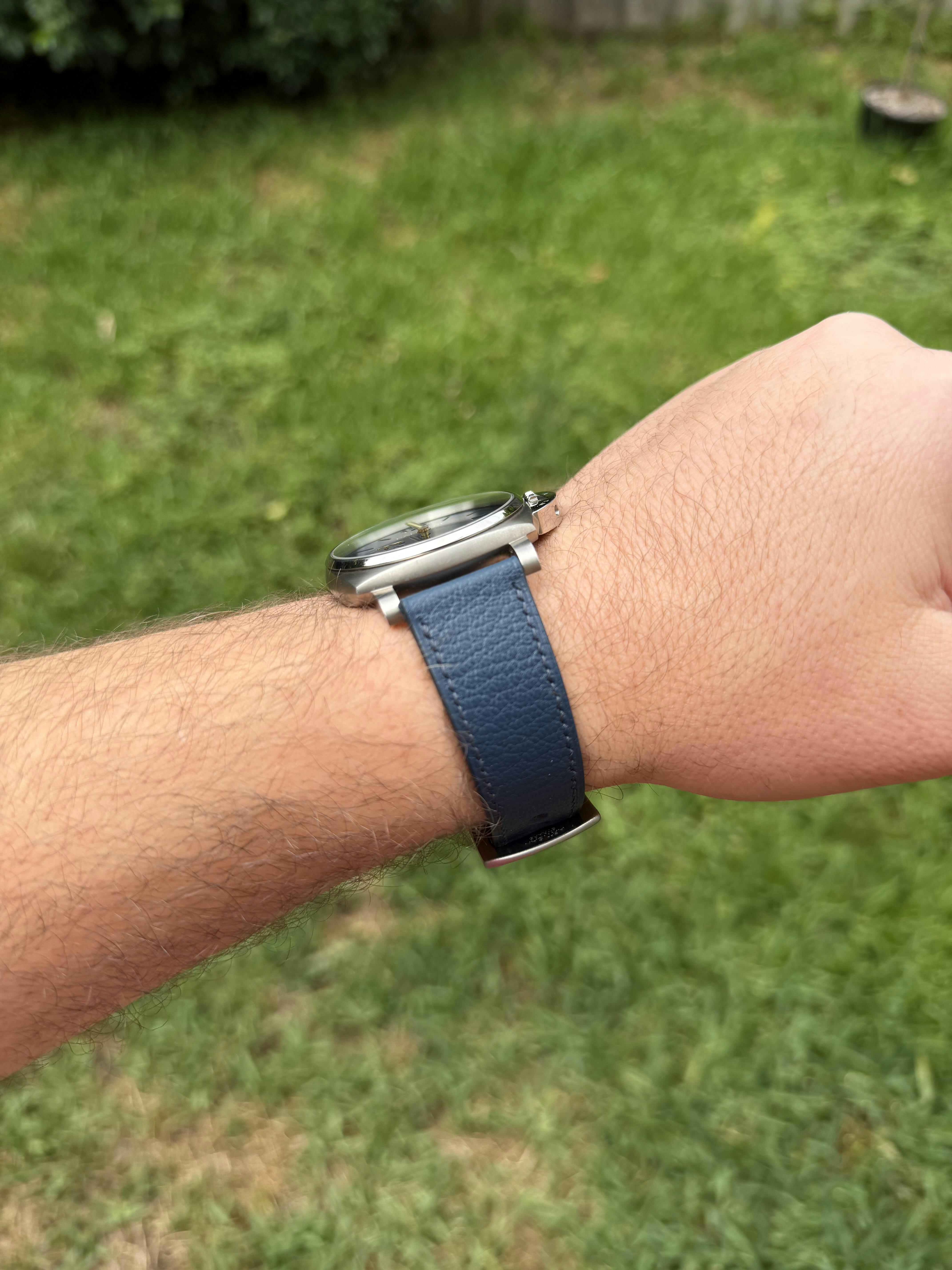 While everyone’s preference for their strap lengths may differ, we don’t like our straps to be too long. A good indicator of whether a strap is too long is if the tail of the strap is visible on your wrist.
